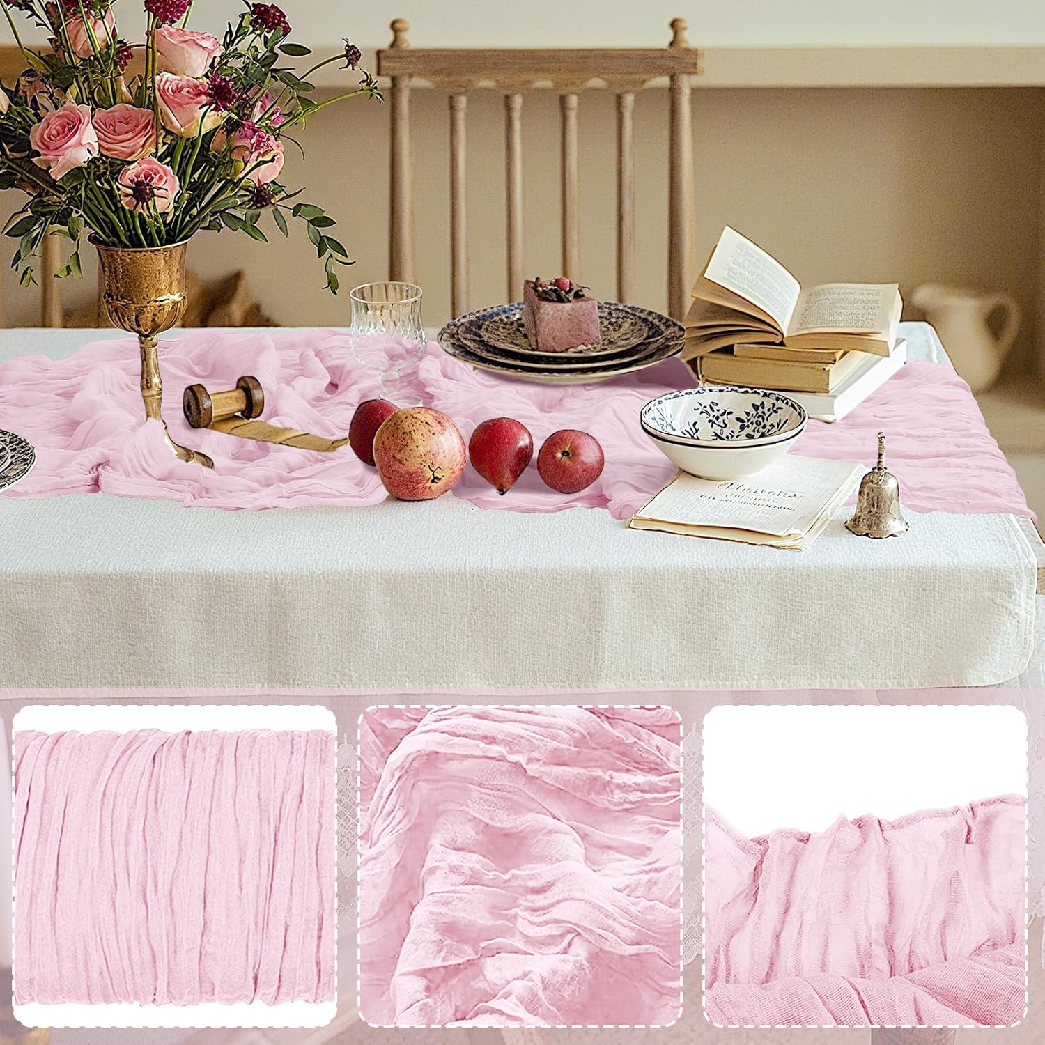 - 【Widely Application】: This romantic cheese clothes table runner is perfect for wedding decorations, indoor/ outdoor wedding receptions, rustic country wedding, bridal shower, baby shower, Valentine's Day, birthday parties, ceremony, Thanksgiving, Christmas, Halloween, dinner party, tea party, bachelorette party, and other special occasions.