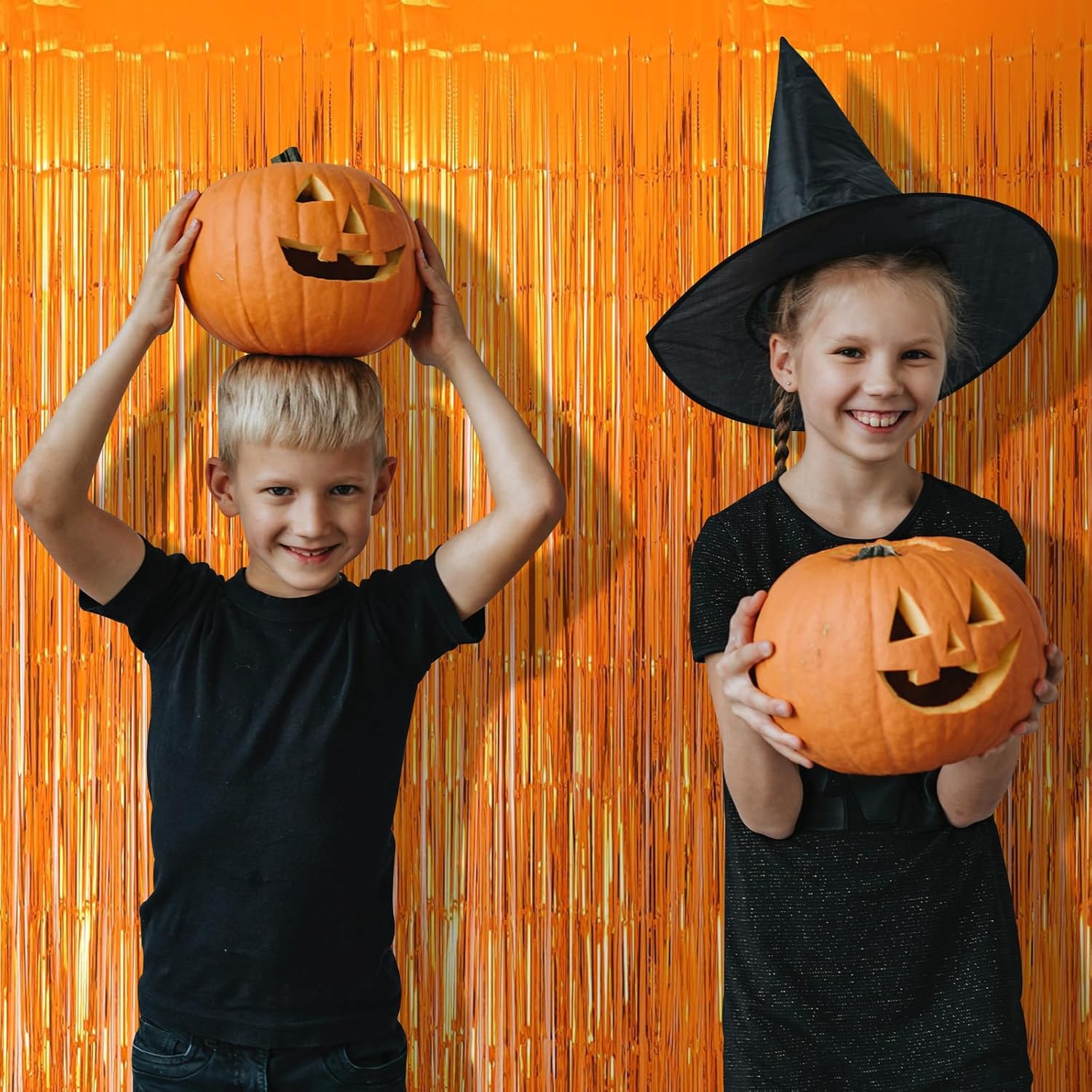 10 Pack Orange Backdrop Curtain 3.2ft x 8.2ft Metallic Tinsel Foil Fringe Curtains Photo Booth Background for Birthday Party Decoration Baby Shower Engagement Wedding Christmas Decoration (Orange)