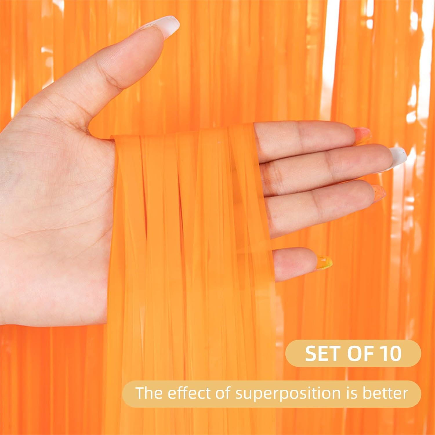 10 Pack Orange Foil Curtain Backdrop 3.2ft x 8.2ft Macaron Tinsel Foil Fringe Curtains Streamer Photo Booth Backdrop for Birthday Party Baby Shower Engagement Wedding Holiday Decor (Macaron Orange)