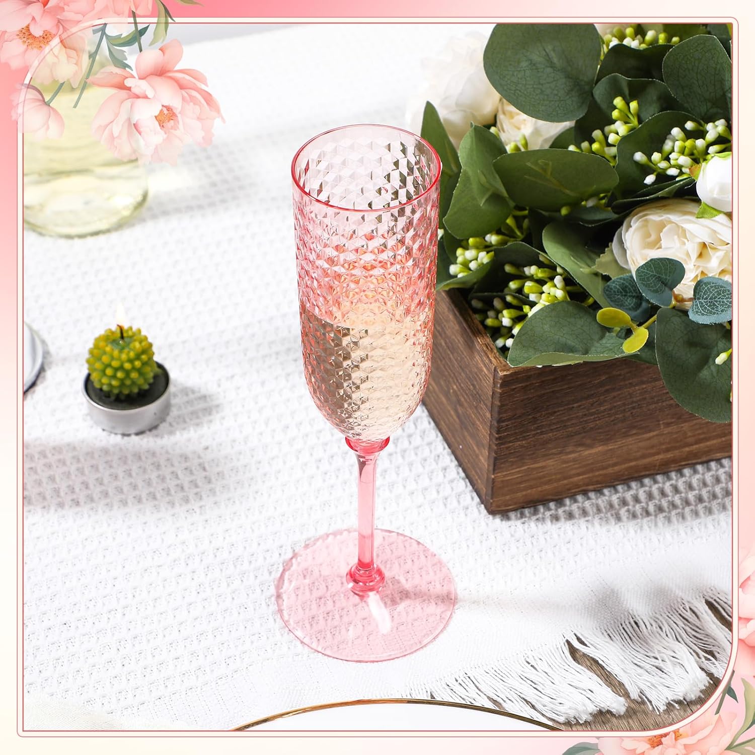 - Suitable for Various Occasions: These glass champagne flutes are not only suitable for daily home use, but can also be applied for bachelor parties, baby showers, anniversaries and other important moments, these outdoor champagne flutes can add brilliance; Their chic look and functional design make them a choice for event planners, caterers, and hosts seeking style without the stress of clean-up
