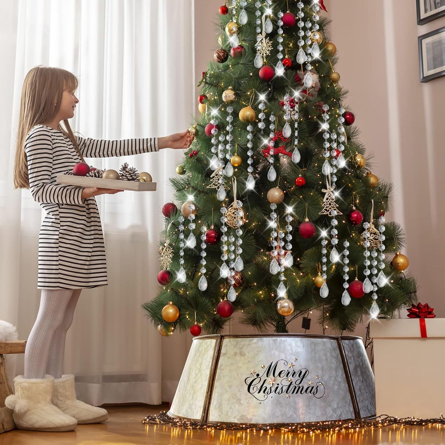 - 【Crystal Christmas Ornaments】Hanging crystals garland are ideal for Christmas trees decor, the reflective crystals garlands can throw the light or sunlight into rich and bright rainbows, make beautiful light refraction round the room, hanging them on your Christmas tree will add a touch of elegance to your Christmas season.