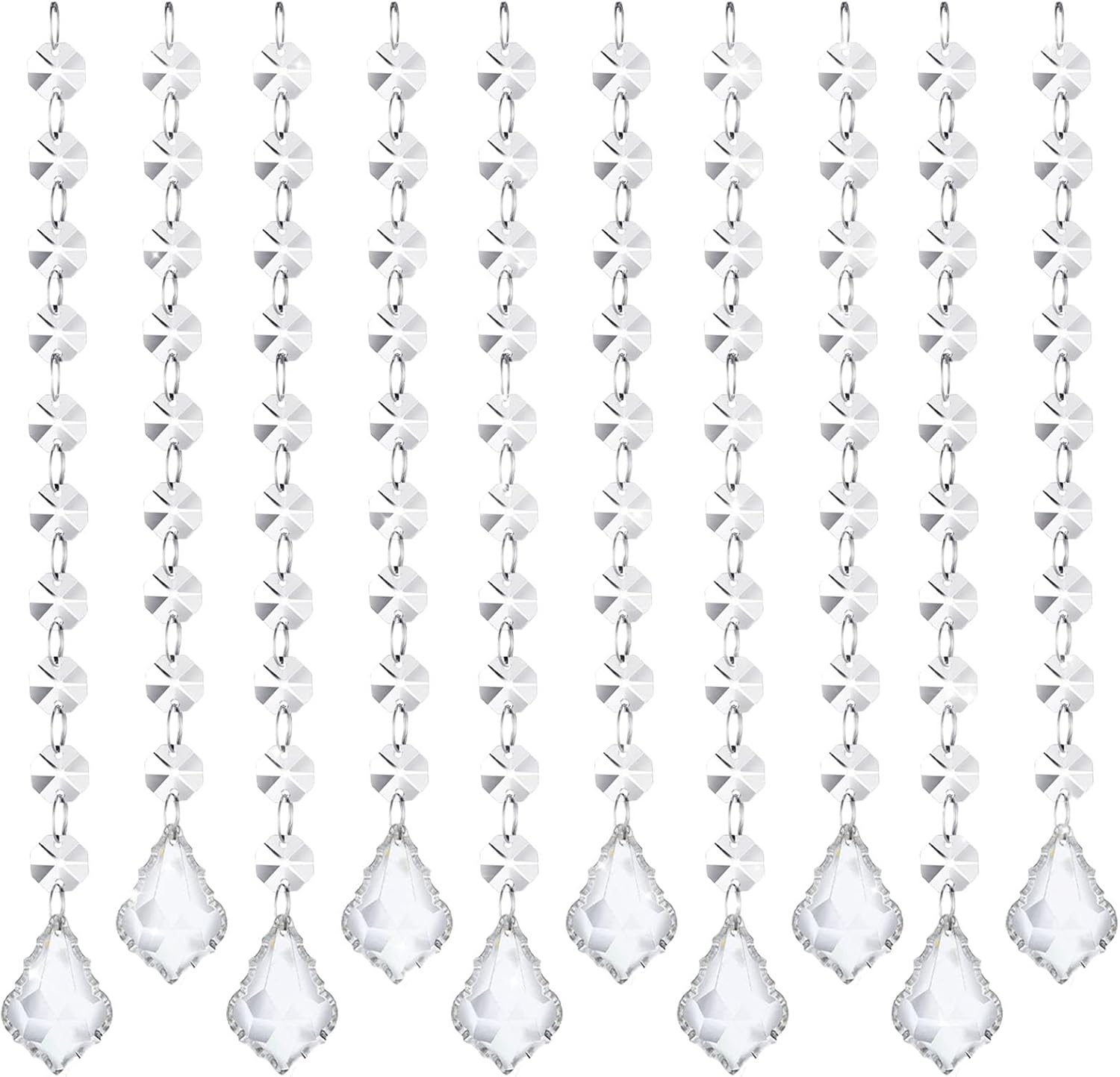 - 【Product Include】You will receive 10 pcs of crystal garland strands. The clear octagon bead is 14mm each; The metal split ring is 12mm each; The teardrop crystal is 30mm x 15mm; total 10 Strings, one string is 3.3ft long; the total length of the crystal garland strands is 33ft. The crystal octagon beads are connected by metal split rings and are easy to disassemble, so you can adjust the length according to the decoration needs.