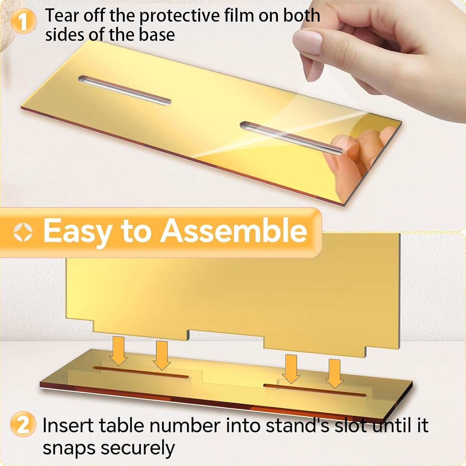 - 5. Durable & Low-Maintenance: Crafted from high-quality acrylic sheets, these acrylic signs numbered feature sleek white painted lettering that ensures durability and beauty. Scratch-resistant tabletop signs feature fade-proof gold coating—simply wipe clean (place cards gold) for repeated use.