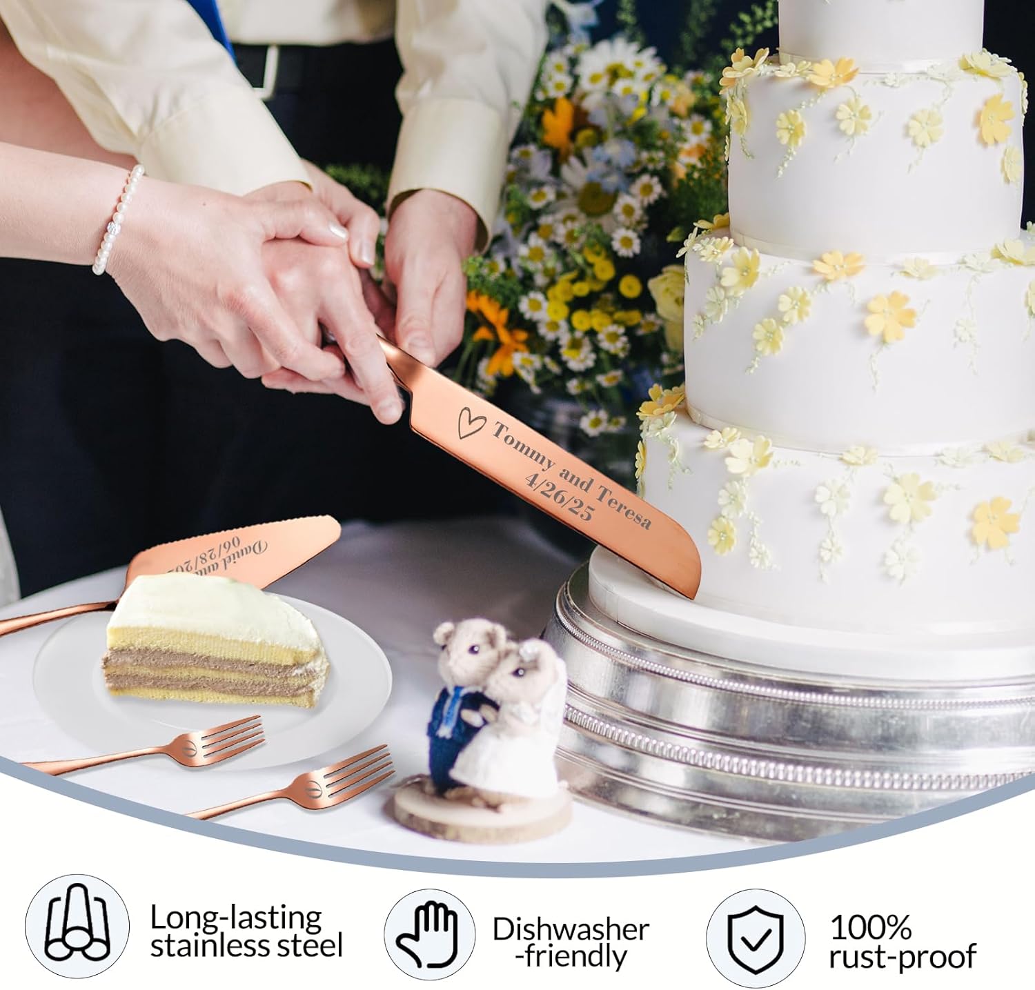 - Personalized Wedding Cake Cutting Set : Our wedding cake cutting set allows you to engrave names, making it a one - of - a - kind keepsake. Commemorate your marriage with this customized set, adding a touch of intimacy for special Ceremony