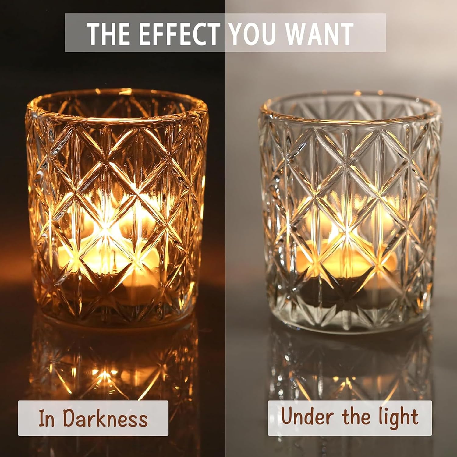 - Simple & Elegant Design : Each candle holder features a simple yet elegant design, adding a touch of sophistication to any space.The brilliant clarity of these candle holders enhances the flickering flame of your tealight candles, creating a mesmerizing display that radiates warmth and tranquility
