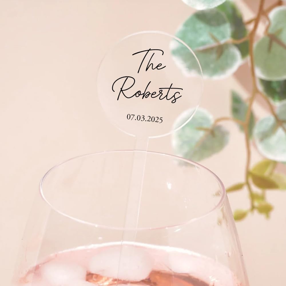 Personalized Wedding Drink Stirrers, Custom Anniversary Stir Swizzle Sticks, Cocktail Bar Last Name Wedding Decorations, Customized Cocktail Stirrers 1